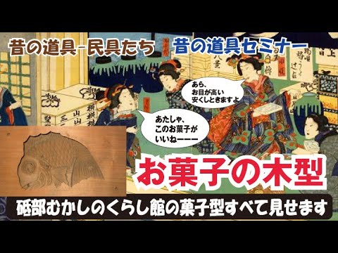 Video 【お菓子の木型】あらゆるお菓子の木型すべてお見せします。結婚式の引き出物の定番落雁の鯛の型木など砥部むかしのくらし館で撮影。 持っている人は、注意事項を聞いて大事に保管しましょう〚昔の道具セミナー〛